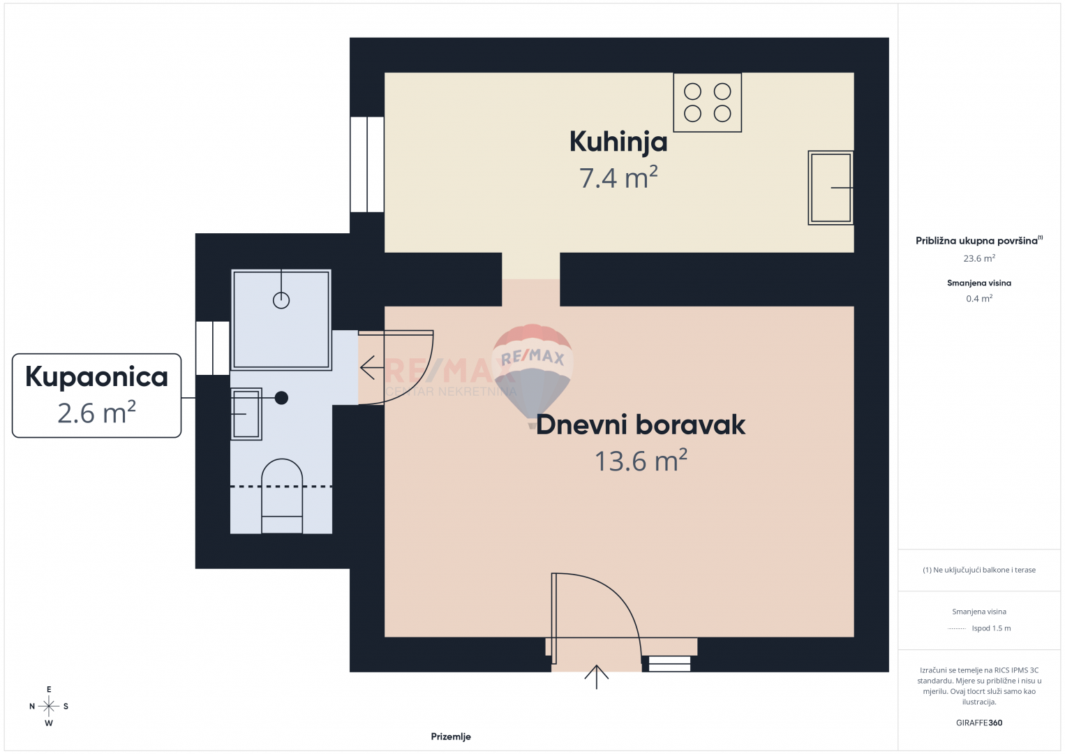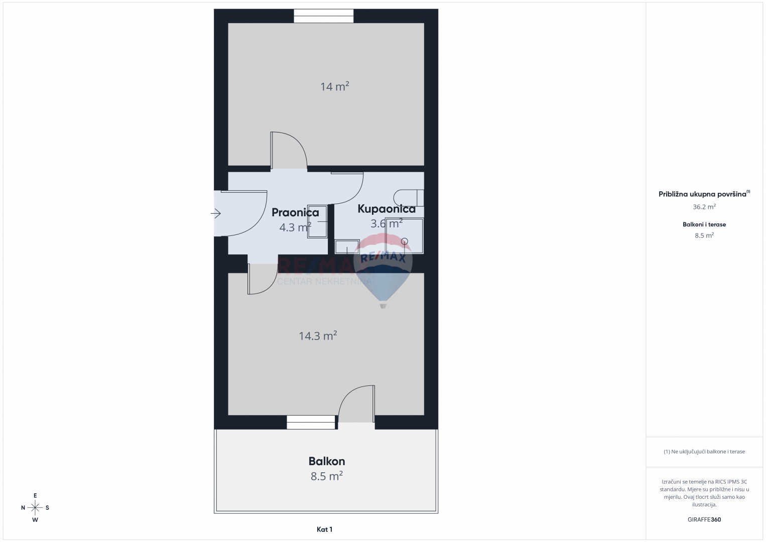 Prvi kat: apartman s jednom spavaćom sobom i vlastitim balkonom