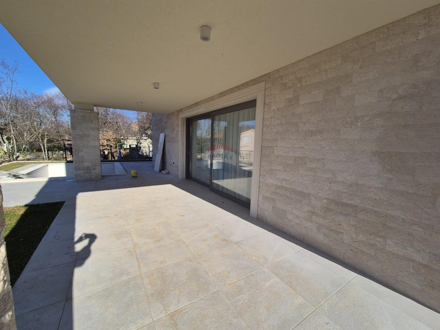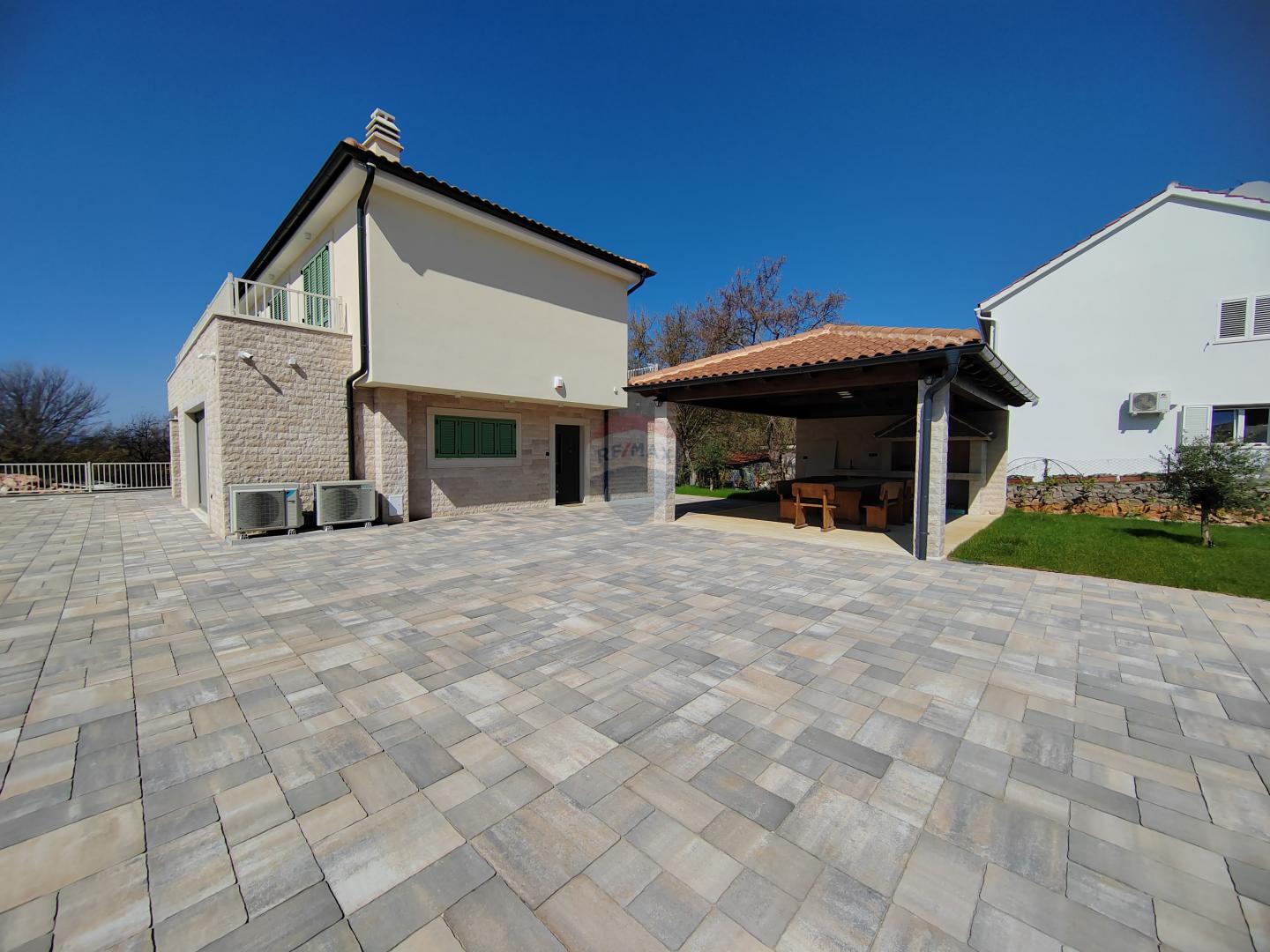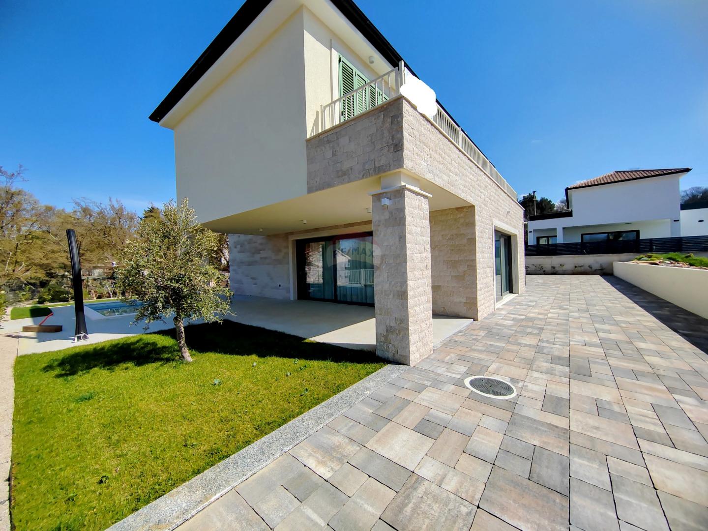 U mirnom dijelu Malinske, u okruženju obiteljskih kuća, prodaje se nova villa građena u mediteranskom stilu.