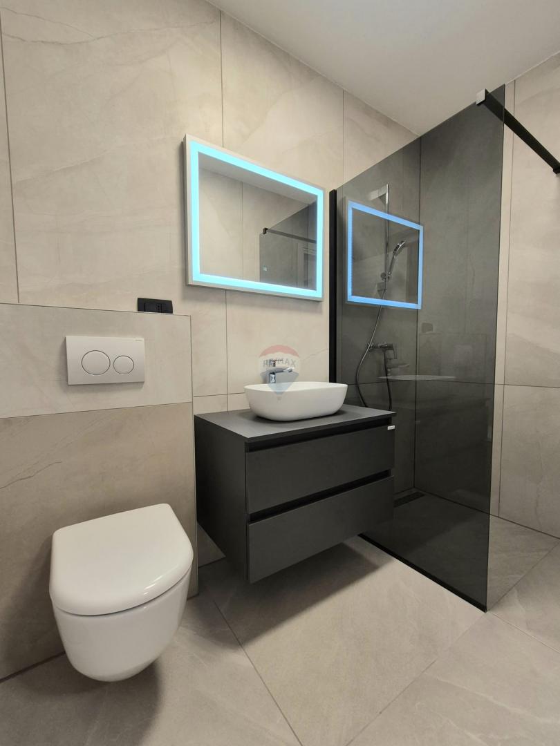 Opremljena je dizalicama topline, klimatizacijom u svim prostorijama, te se prodaje potpuno namještena s novim, kvalitetnim namještajem.