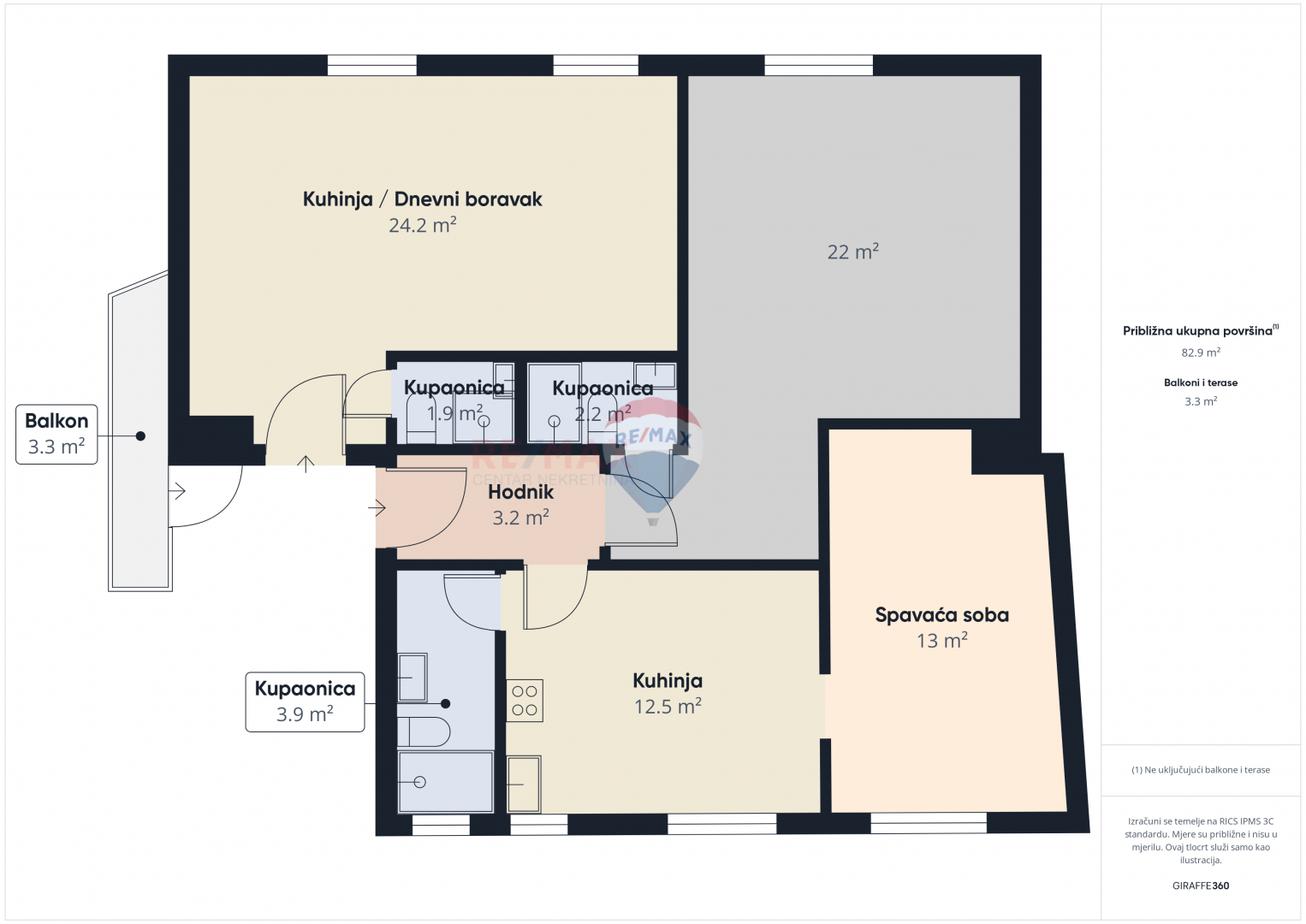 Stan je podijeljen na dvije garsonijere i jedan jednosoban stan. Garsonijere se sastoje od dnevnog boravka s kuhinjom i spavaćim prostorom, dok jednosobna jedinica nudi dnevni boravak s blagovaonom i kuhinjom, spavaću sobu i kupaonicu.