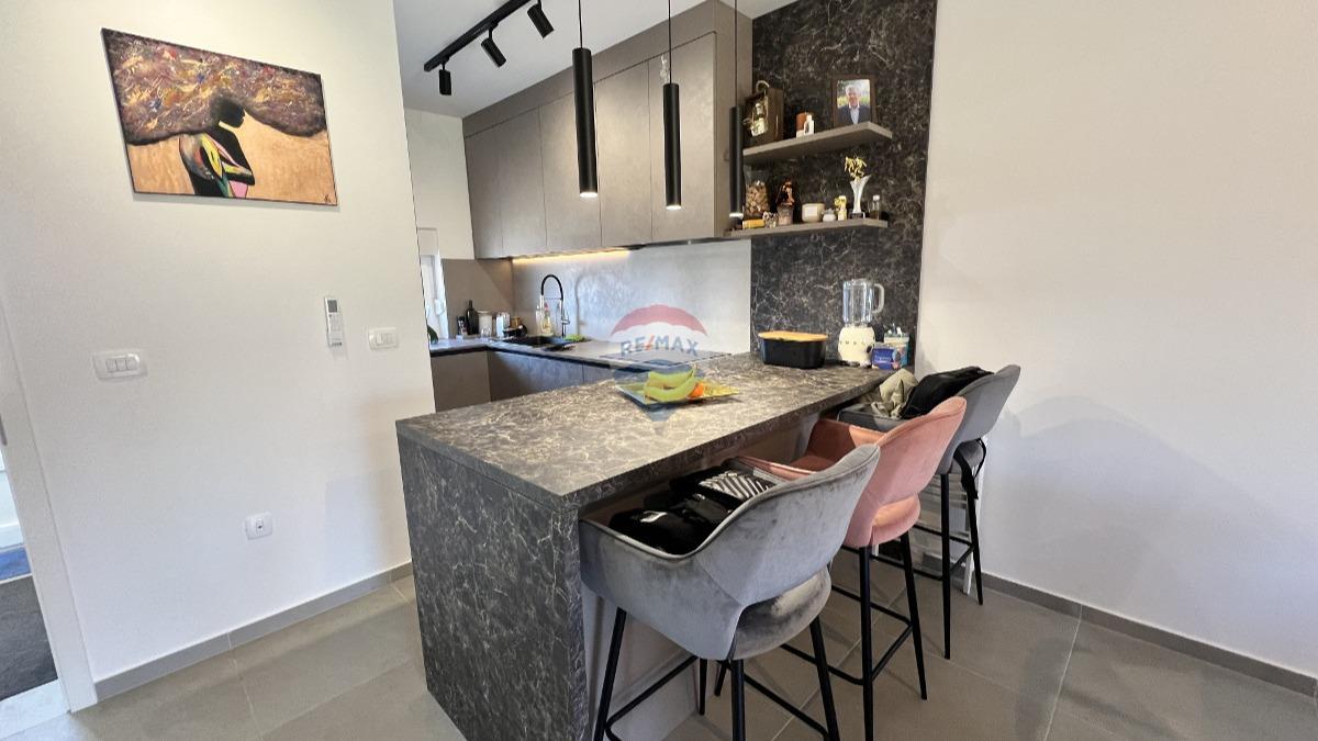 Stan je opremljen kvalitetnim namještajem, sanitarijama i stolarijom, a prodaje se kompletno namješten. Grijanje je osigurano integriranim sustavom podnog grijanja, dok su za hlađenje i dodatnu regulaciju temperature ugrađeni klima uređaji. što omogućuje ugodan boravak tijekom cijele godine. Stanu pripadaju dva parkirna mjesta.