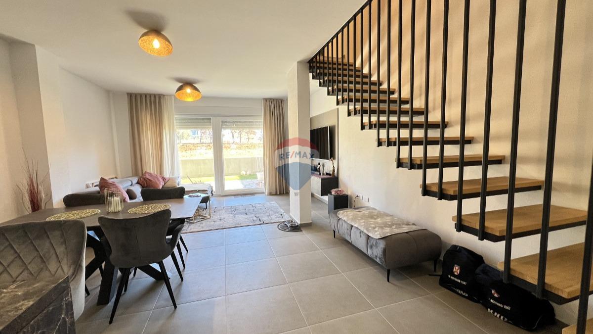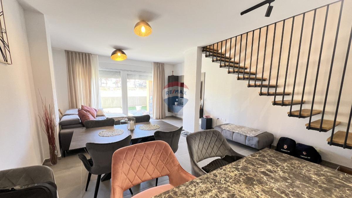 RE/MAX Centar nekretnina predstavlja atraktivan i moderno uređen stan u Novigradu, smješten na mirnoj lokaciji, 1.700 m od centra grada i 1.300 m od mora i lijepo uređene plaže. Stan ukupne površine 124,56 m² prostire se na tri etaže: prizemlje, prvi kat i drugi kat.