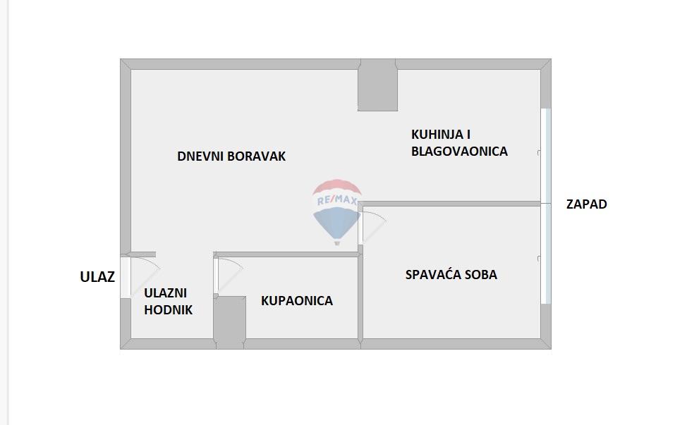 Stan se sastoji od dnevnog boravka s kuhinjom i blagovaonicom, odvojene spavaće sobe, kupaonice i hodnika.
